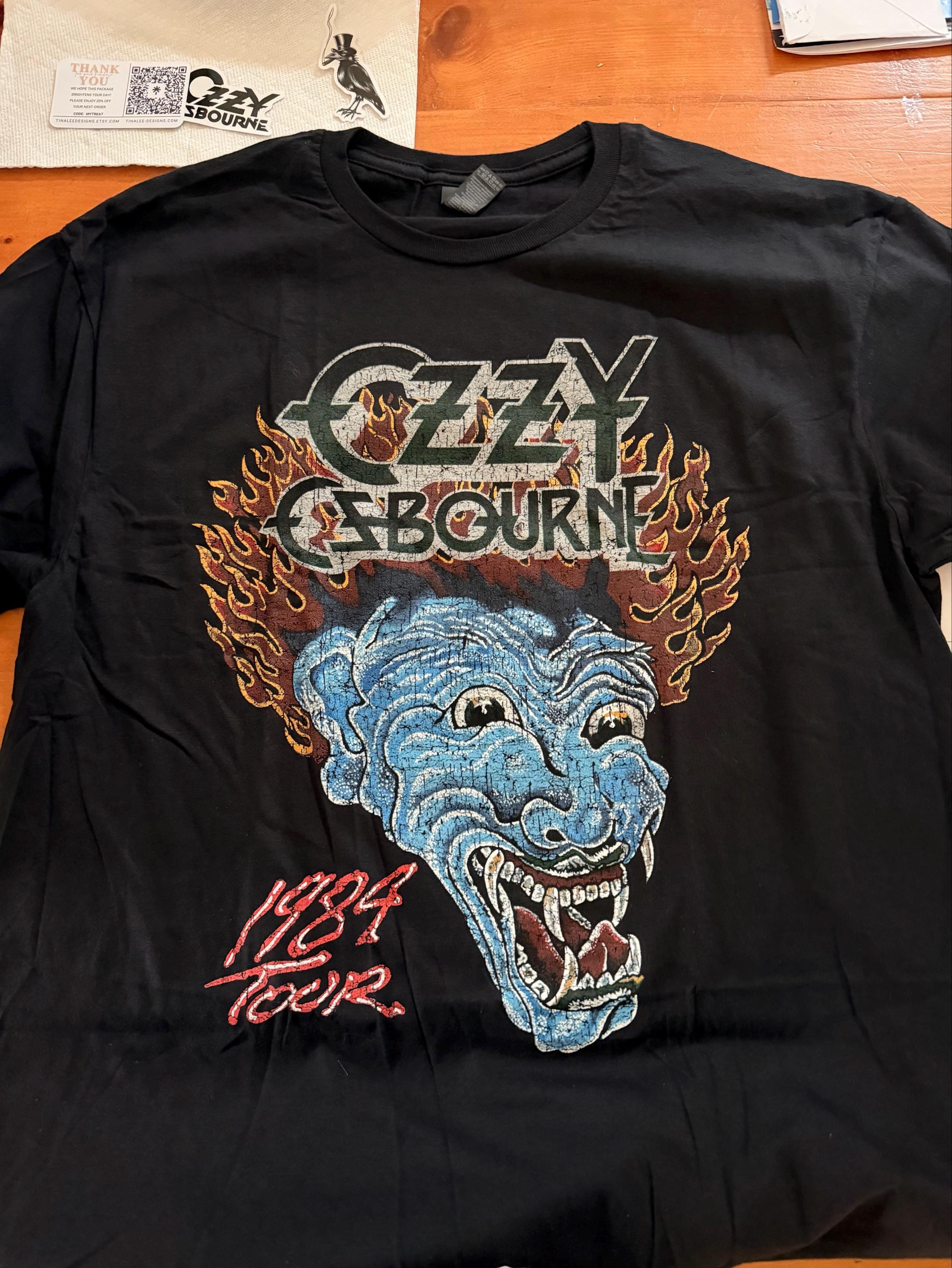 I’m very happy with this awesome Ozzy shirt. Also thanks for the stickers. I will definitely be back.
